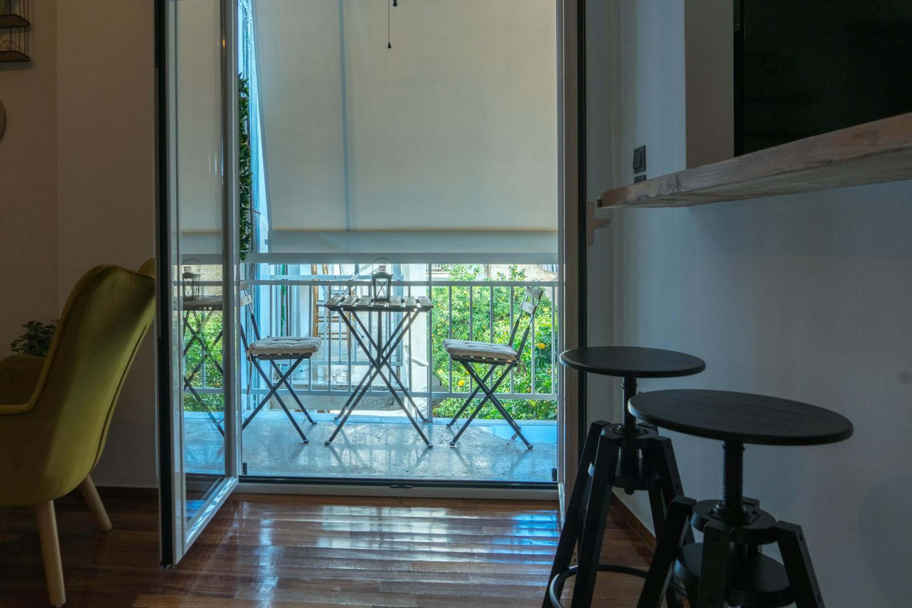 Upon arrival, you are greeted with a warm atmosphere and the convenience of express check-in. The area feels vibrant yet relaxed, with the terrace inviting you to enjoy the fresh air. Mornings begin with the aroma of coffee brewing in the fully equipped kitchen, and you can step outside to the charming streets of Athens. A leisurely walk to nearby attractions allows you to soak in the local culture and ambiance.