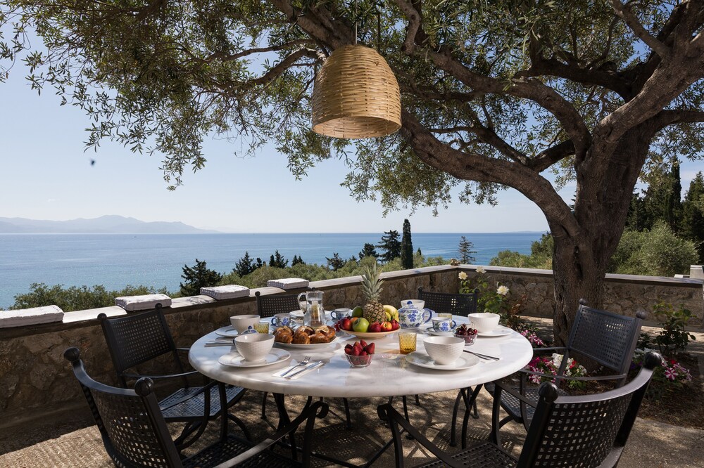Upon arrival, you'll be greeted by a tranquil atmosphere surrounded by lush gardens. The air-conditioned villa provides a comfortable space, and you can immediately feel the relaxing vibe as you step onto the terrace. Mornings can be spent enjoying coffee by the seasonal outdoor pool, listening to the gentle sounds of nature. A short walk takes you to the beautiful Ionian Sea, where you can soak in the sun or explore Kavos Beach.