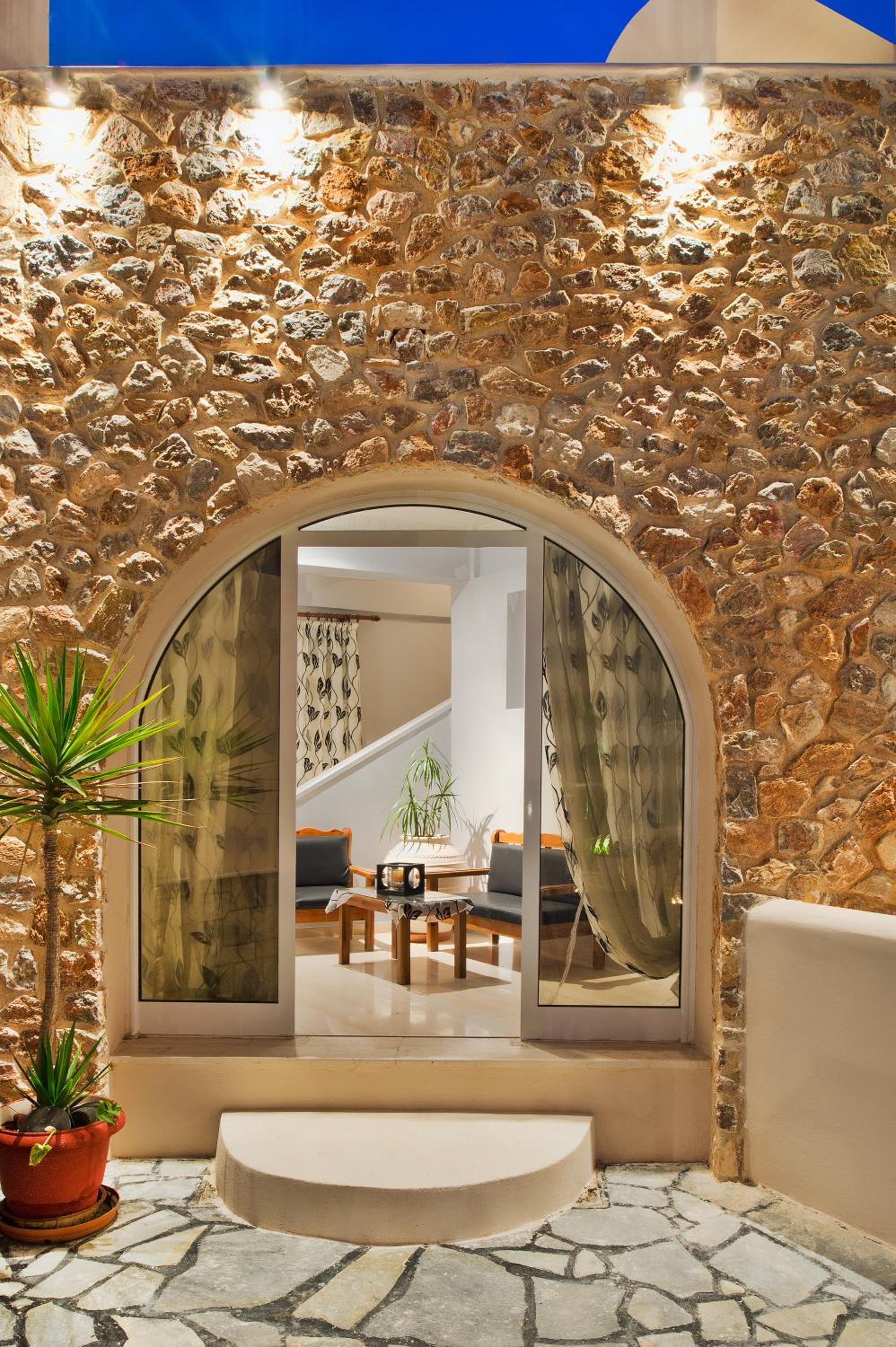 Located on Main Street in Fira, the hotel offers easy access to local attractions, shops, and restaurants. The area is walkable, making it convenient to explore the vibrant nightlife and stunning views of the caldera. Public transport options are available for further exploration of Santorini.