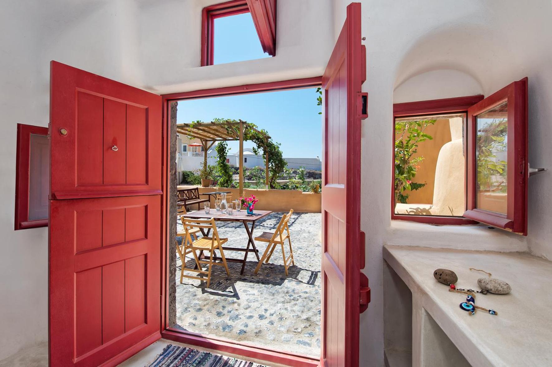 Upon arrival at AMELIE'S CAVES by NIKO, you are greeted by the warm air and the charming terrace that invites you to unwind. The cozy rooms are air-conditioned, providing a refreshing escape from the sun as you take in the stunning views of the surrounding landscape. Mornings begin with the gentle sound of nature, and you can enjoy a leisurely breakfast on the terrace, soaking in the beauty of the Japanese garden. A short stroll leads you to the nearby beaches, where the soft sand and soothing waves offer a perfect start to your day.