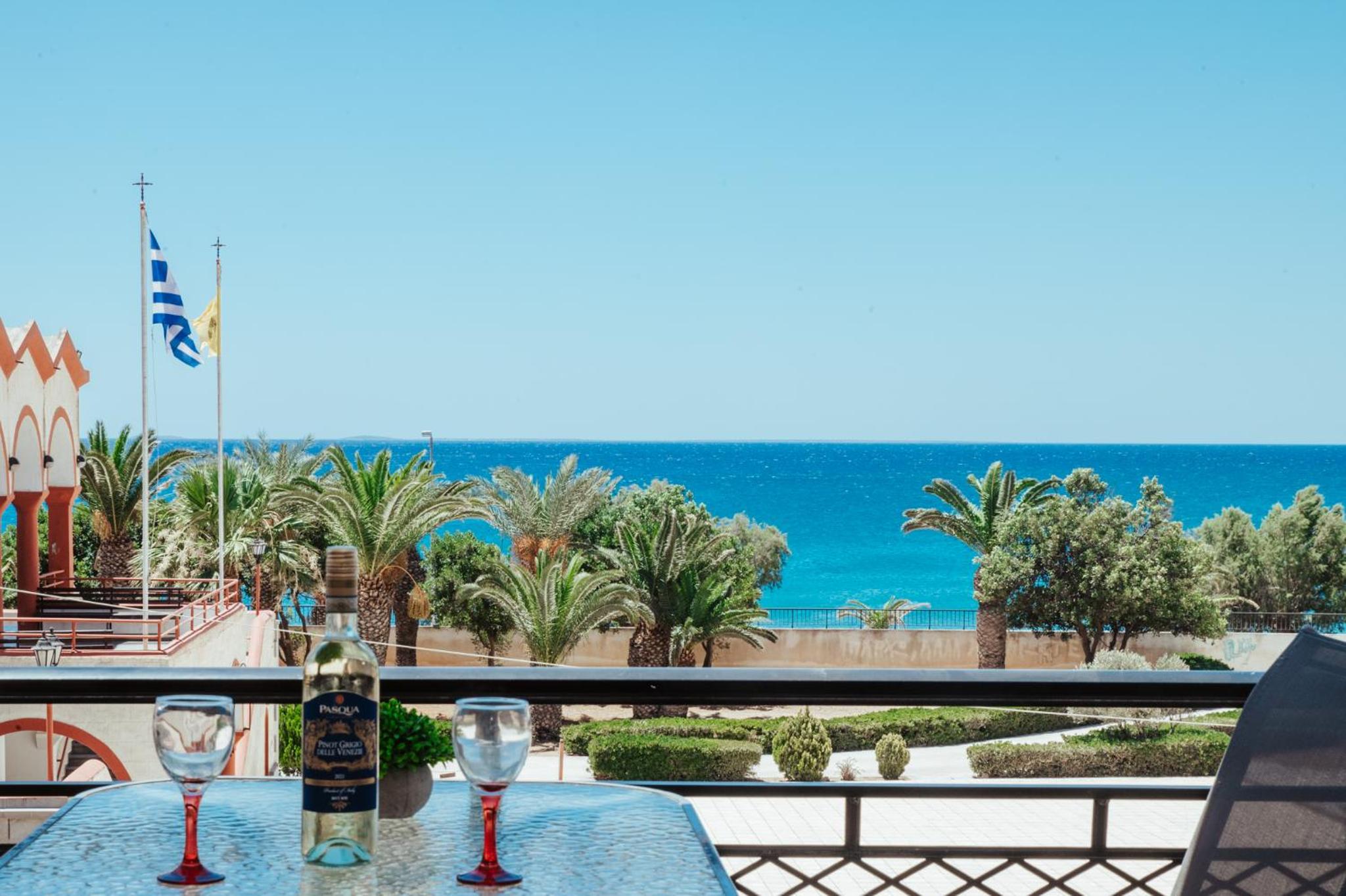 Luxurious Accommodation: Sunny home crete offers a spacious apartment with 3 bedrooms, a living room, flat-screen TV, and a fully equipped kitchen. Enjoy the balcony with mesmerizing sea views and 2 bathrooms for added convenience.