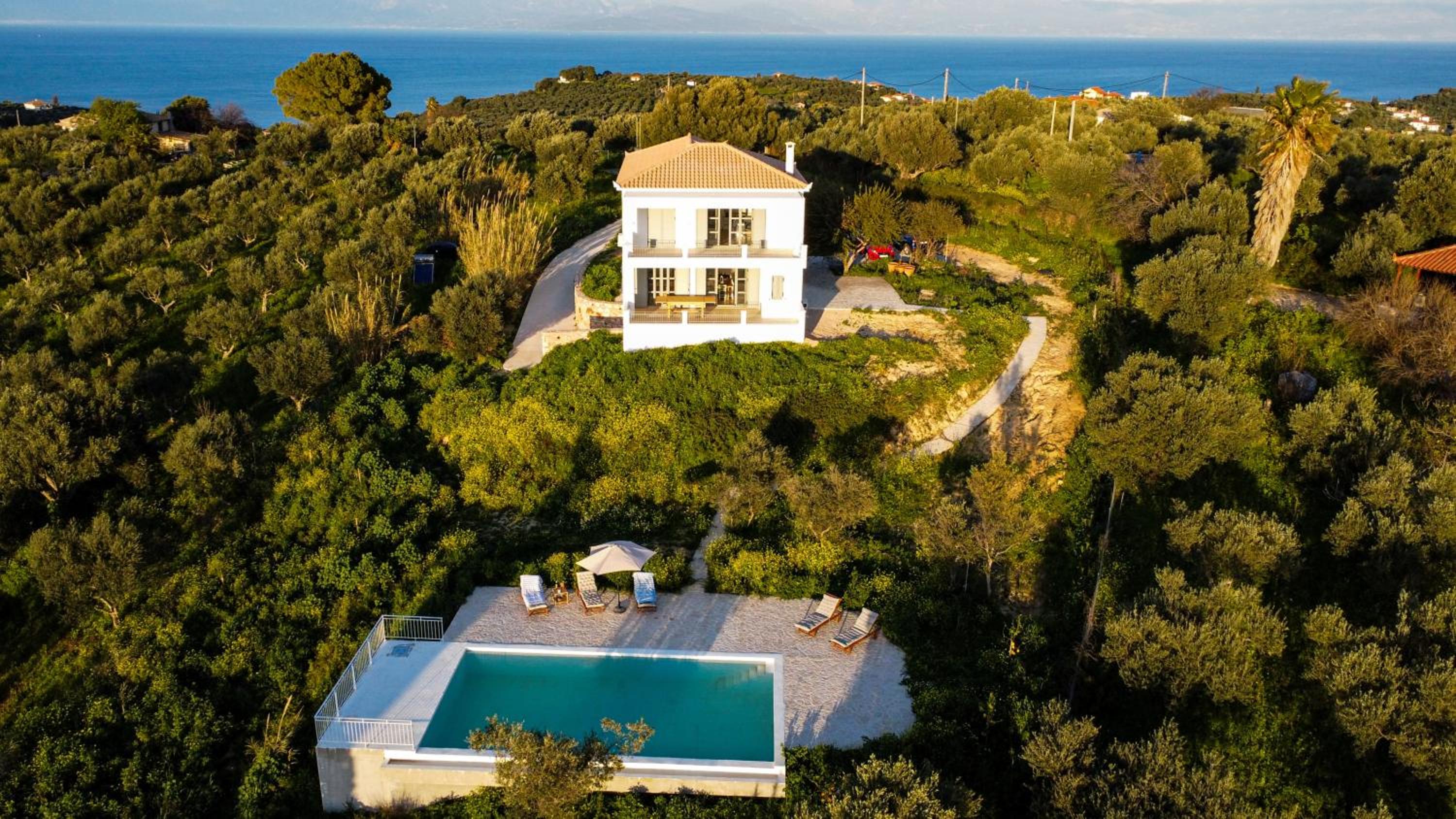 Villa Koronelia stands out for its private infinity pool and spacious layout, perfect for a luxurious family retreat.