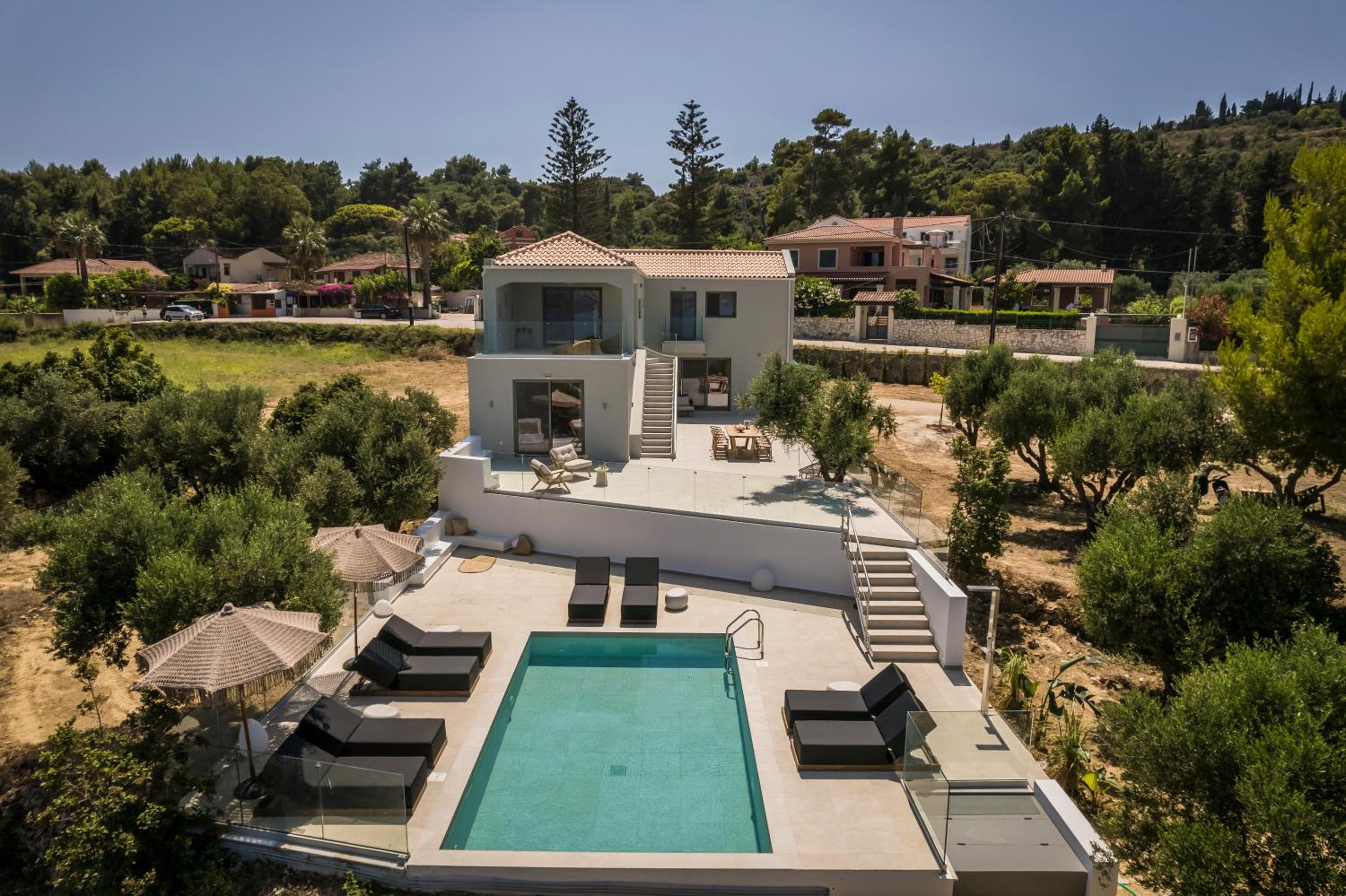 Nearby attractions include Petani Beach, Xi Beach, and the Monastery of Kipouria, all within a short drive from the villa.