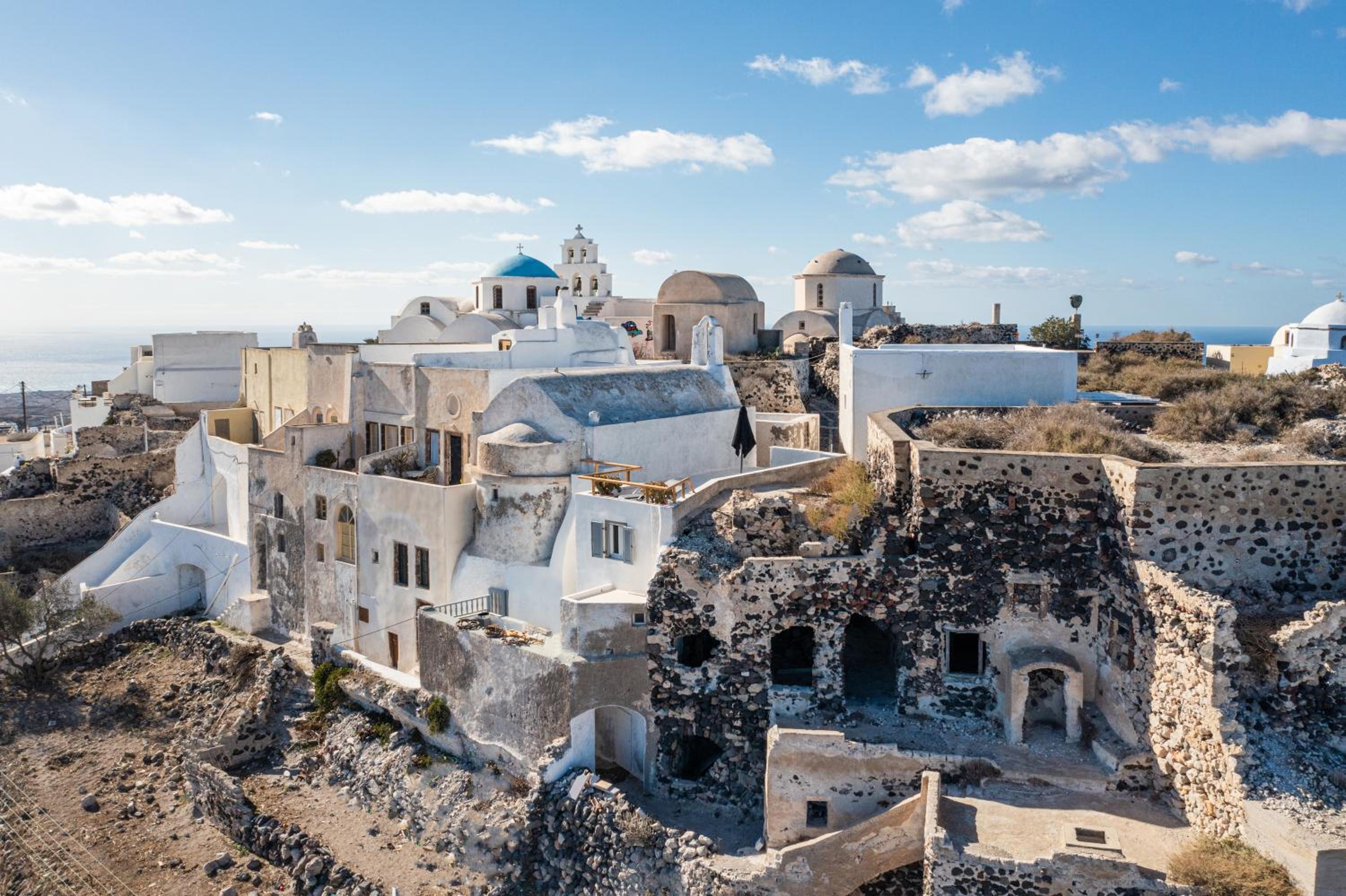 Kastro Cave House is situated in the charming village of Pirgos, known for its traditional Cycladic architecture and stunning views. It's a short walk to local eateries and shops, and while public transport options may be limited, renting a car can enhance your exploration of Santorini's beautiful sites.