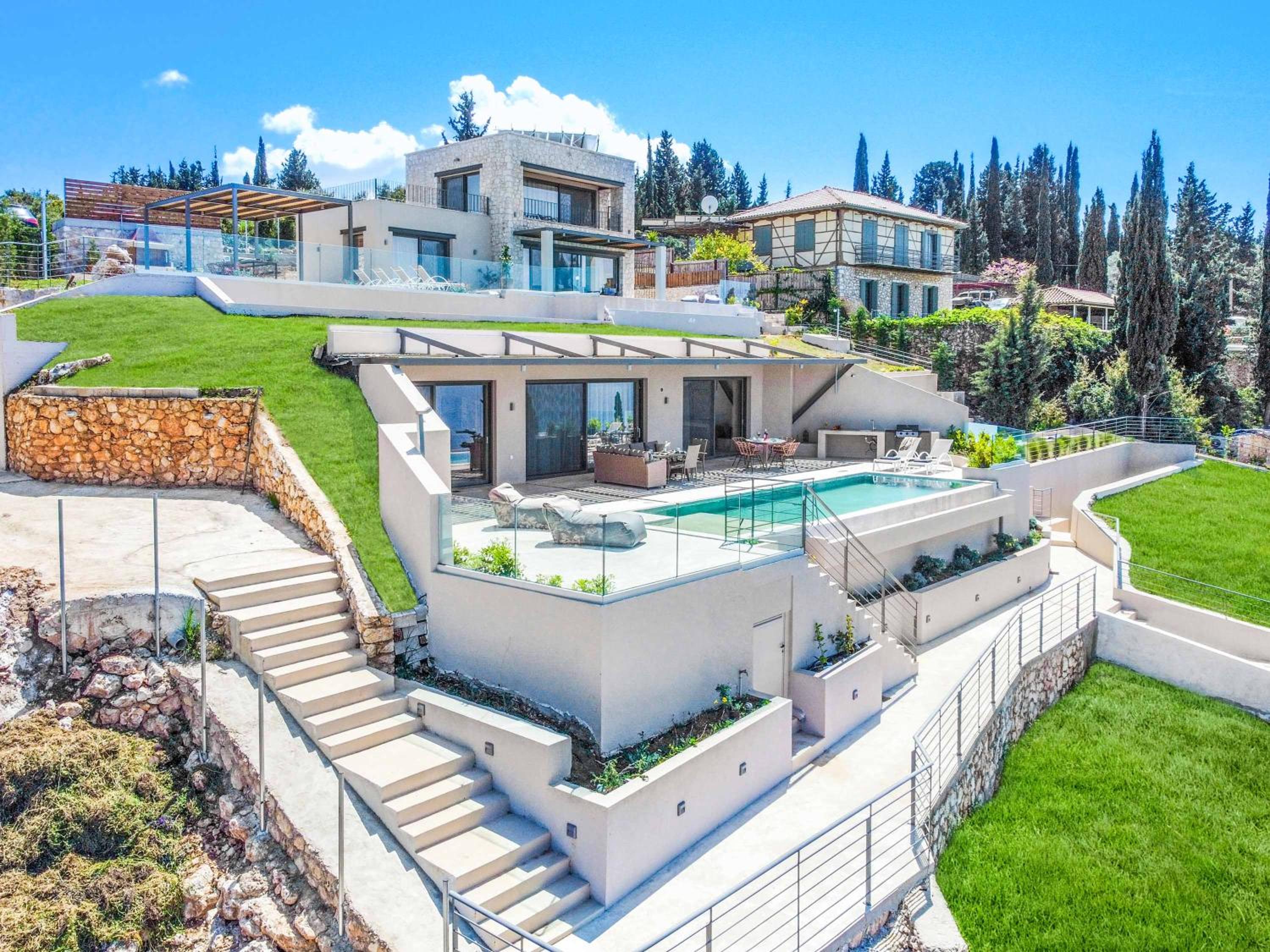 Villa Andromeda Sunset in Tsoukaladhes, Greece, is a luxurious retreat designed for families seeking relaxation and adventure. Located on Οdos xoris onomasia, this villa features an infinity pool that provides breathtaking views of the Aegean Sea. Just a short drive away, you can explore the serene Skala Gialou Beach, only 2 km from your doorstep, or visit the historic Faneromenis Monastery, about 3 km away. The villa is perfect for those who want to blend leisure with exploration, offering amenities like air conditioning and a terrace for al fresco dining. The charming outdoor spaces invite you to enjoy the Mediterranean atmosphere while the nearby attractions, including Pefkoulia Beach and Nidri Waterfalls, promise unforgettable experiences. Whether you're lounging by the pool or preparing a meal in the fully equipped kitchen, Villa Andromeda Sunset ensures a memorable stay in this beautiful part of Greece.