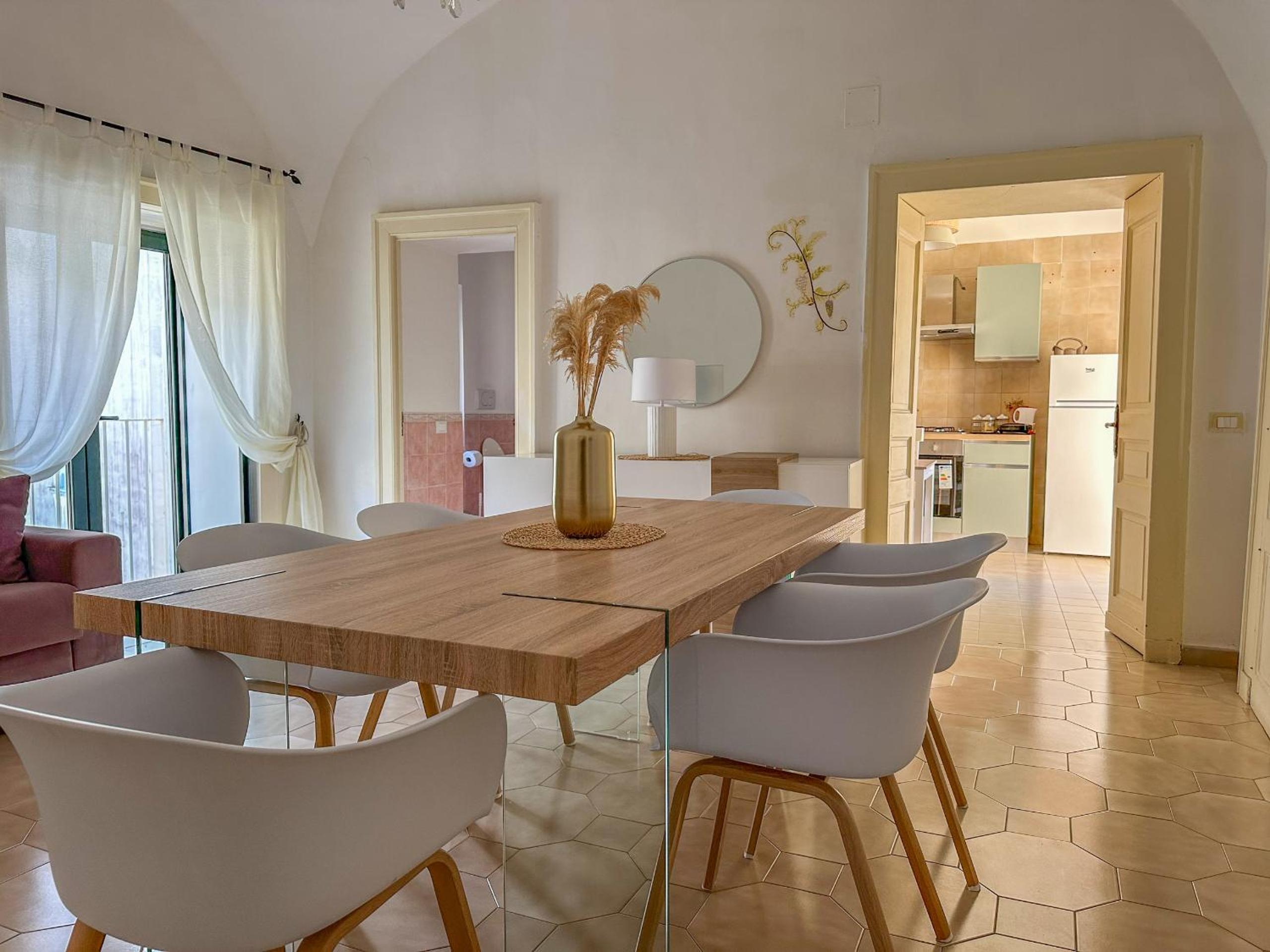 Upon arrival, you are greeted by friendly staff in a cozy atmosphere, with the scent of fresh air from the nearby terrace. The area feels laid-back, with a mix of local charm and tourist appeal. After settling in, a short walk to Marina di Alimuri Beach offers a refreshing dip in the sea, while nearby restaurants tempt with the aroma of Italian cuisine. Mornings start with a leisurely breakfast on the terrace, soaking in the sun before exploring the Roman Archeological Museum MAR just a short distance away.