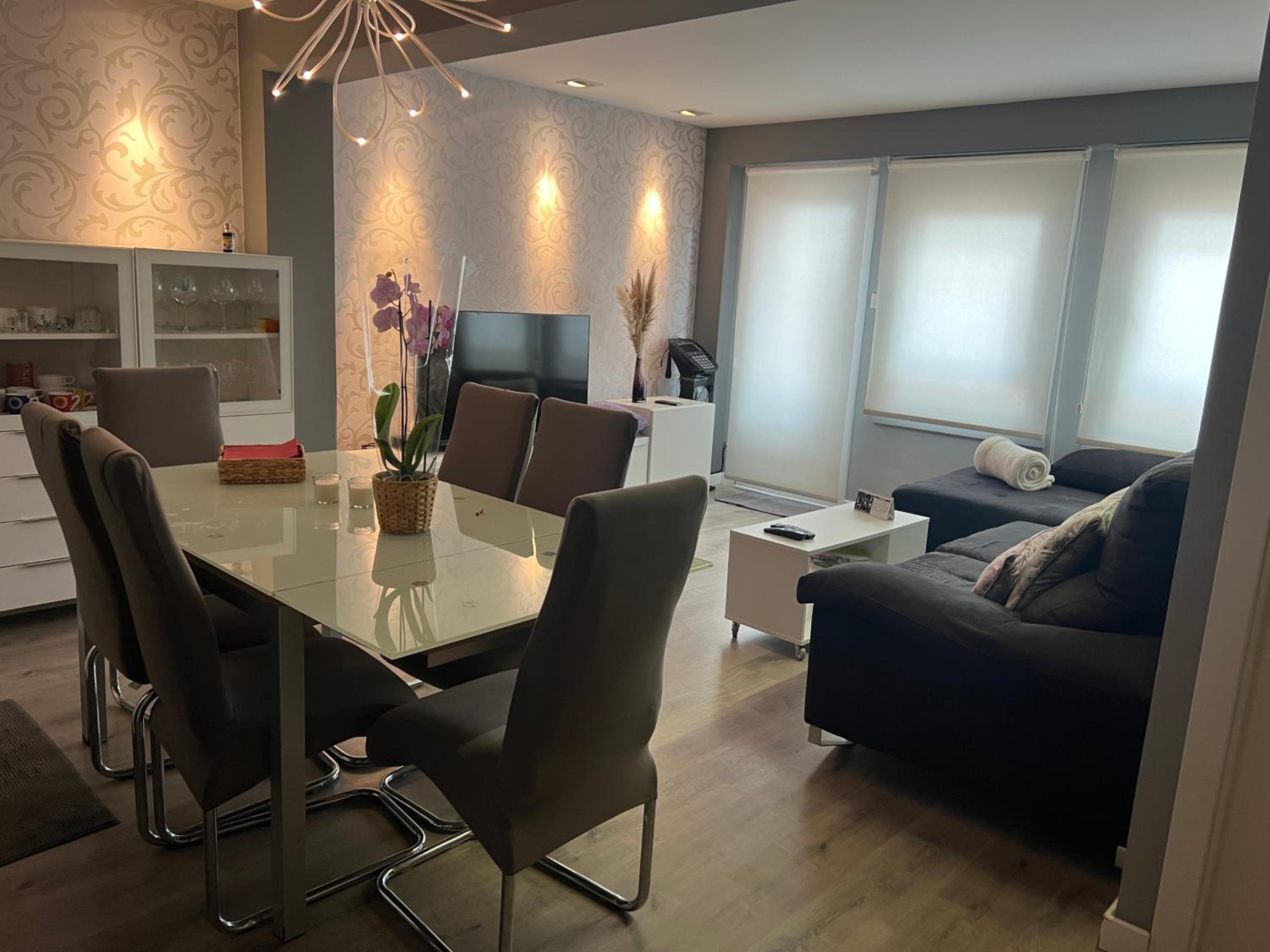 The spacious apartment features 3 bedrooms, a living room, a flat-screen TV, and a fully equipped kitchen with a dishwasher and an oven. Guests can enjoy free WiFi, towels, bed linen, and even fresh fruits as additional in-room amenities.
