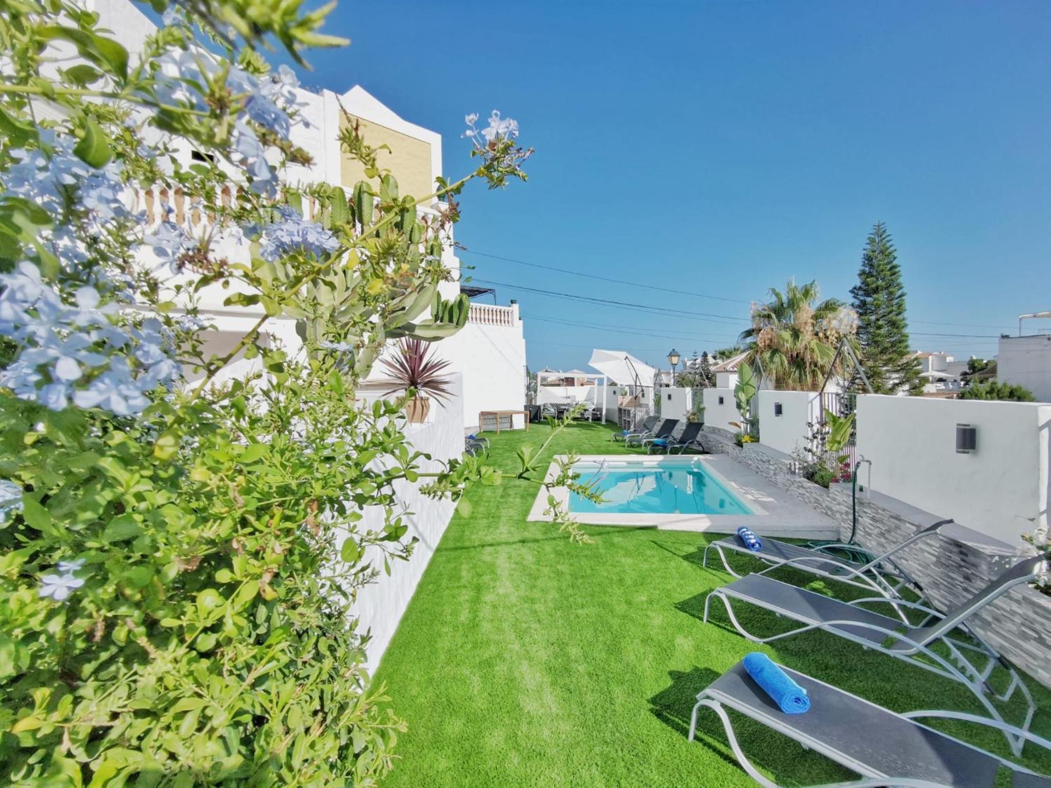 Casa Higuera in Nerja, Spain, offers an exquisite escape for families and groups seeking relaxation and adventure. Located at Urbanización Casablanca 36, the hotel features a private heated pool and a spacious terrace with stunning mountain views. Just 1.5 km away, you can visit the iconic Balcon de Europa, or take a short stroll to Burriana Beach for sun-soaked days. Families will appreciate the indoor play area, ensuring the little ones stay entertained. With air conditioning and non-smoking rooms, comfort is paramount. The hotel's tranquil garden invites you to unwind after a day of exploring. Whether you're hiking in the nearby Sierra de Almijara or enjoying local cuisine at a nearby restaurant, Casa Higuera is your gateway to an unforgettable holiday experience.