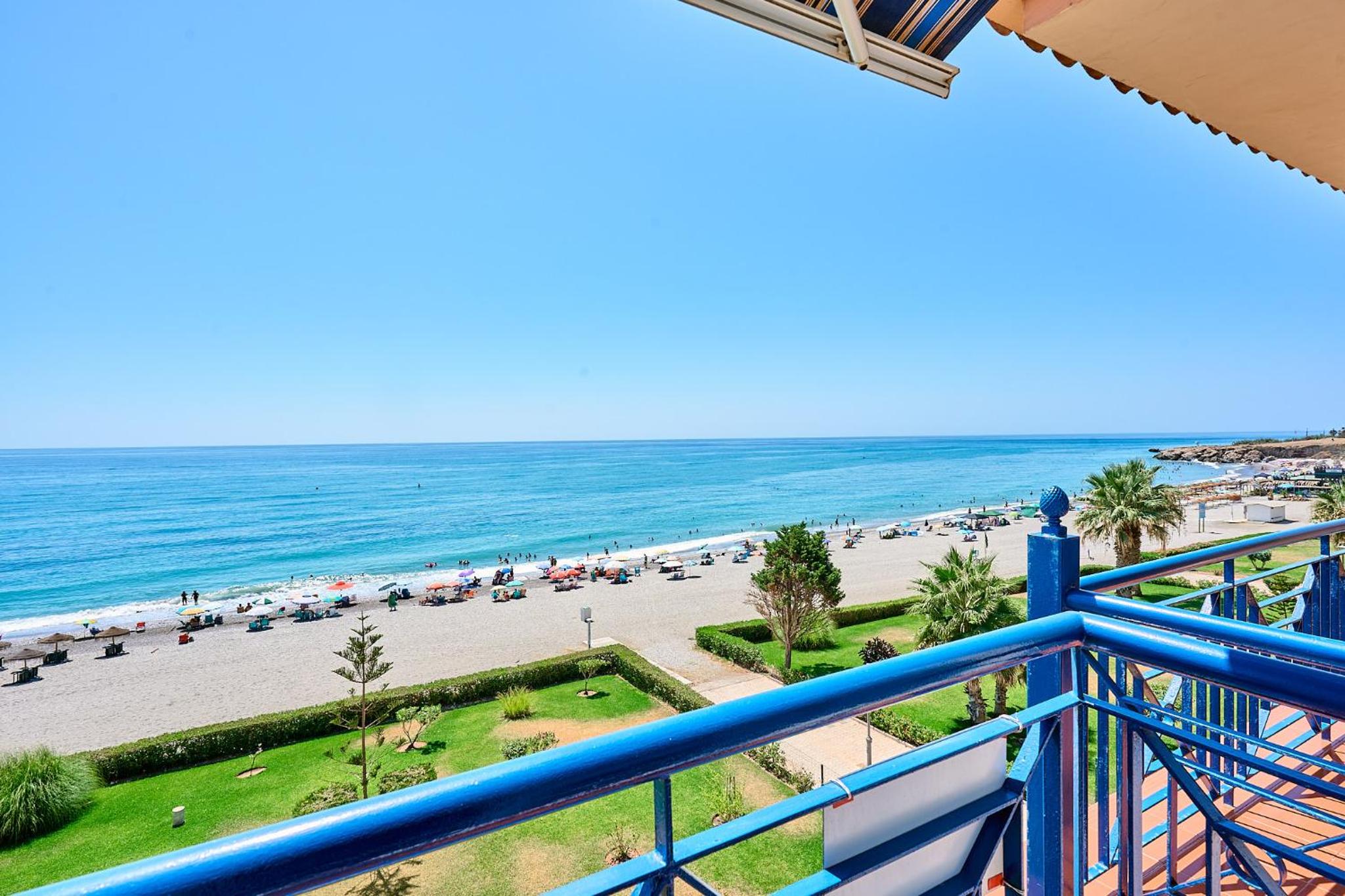 Experience the ultimate beachfront getaway at Strand Appartement Torrox Costa Td02. Enjoy stunning sea views and a garden, just steps away from Playa del Sillon.